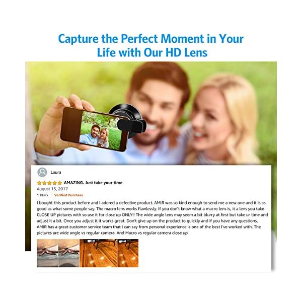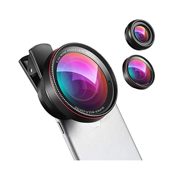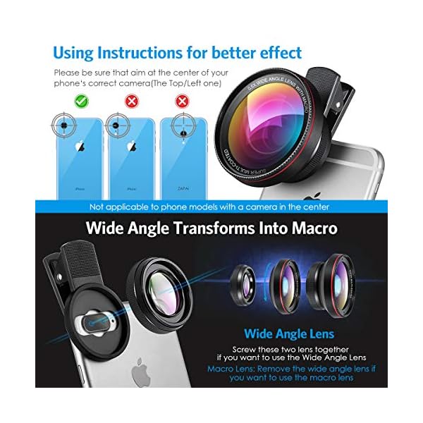 AMIR Phone Camera Lens, 0.6X Super Wide Angle Lens + 15X Macro Lens for iPhone Lens Kit, 2 in 1 Clip-On Cell Phone Camera Lens for iPhone 8, X, 7, 7 Plus, 6s, 6, Samsung, Other Smartphones