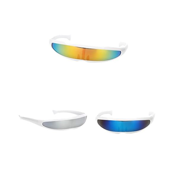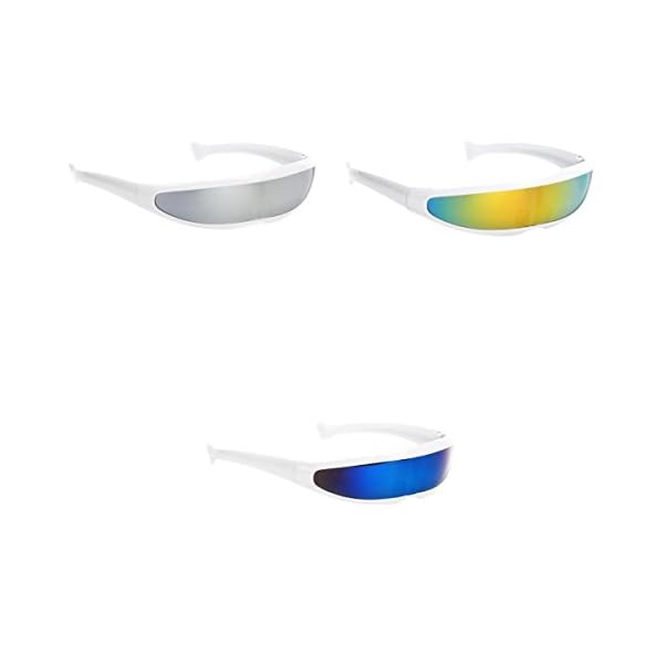 Baosity 3 Pcs Funny Futuristic Cyclops Colored Mirrored Lens Wrap Single Sunglasses