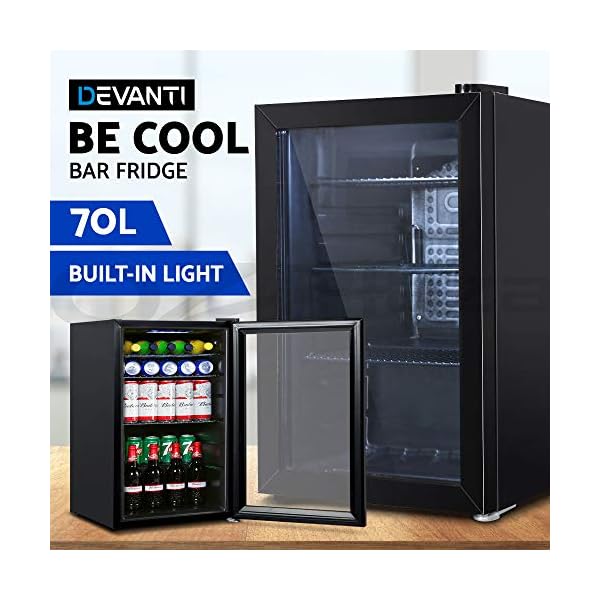 * PORTABLE: The portable Devanti Bar Fridge is great for keeping a variety of food and beverages chilled and cooled and without taking up too much space.
